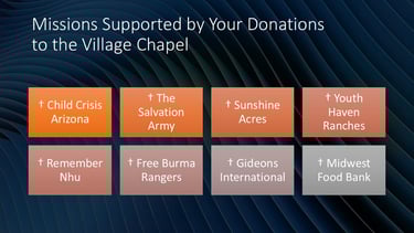 Our Chapel believes that every act of generosity helps carry the Gospel farther than we could ever go on our own.